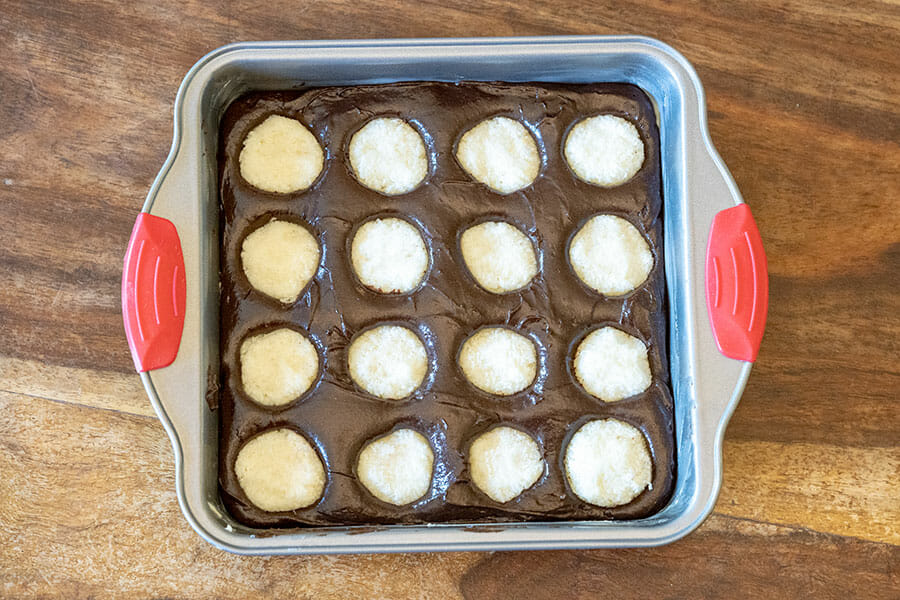 - Poser les boules de coco sur la pâte et les enfoncer au maximum.