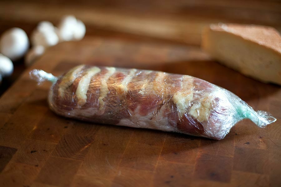 - Mettre 100 grammes de maroilles coupés en tranches et 450 grammes de filet mignon de porc sur votre plan de travail.