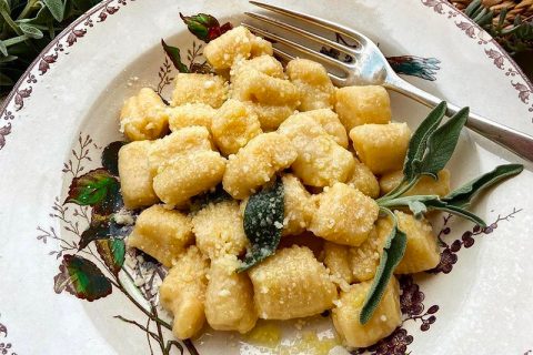 Les gnocchi de polenta, c’est un plat qu’on trouve surtout dans le nord de l’Italie, en Vénétie ou en Lombardie, là où la polenta est reine à table depuis toujours. Quand il reste de la polenta de la veille (et il en reste souvent, parce qu’on en fait toujours trop), les grands-mères la transforment en ces petits coussins moelleux : on mélange la polenta froide avec de la farine, du parmesan et une pointe de muscade, on forme des gnocchi, on les fait pocher deux minutes et on les nage dans du beurre fondu et encore plus de parmesan. C’est simple, rustique, et ça utilise les restes sans que personne ne s’en rende compte – l’esprit anti-gaspi italien dans toute sa splendeur.
