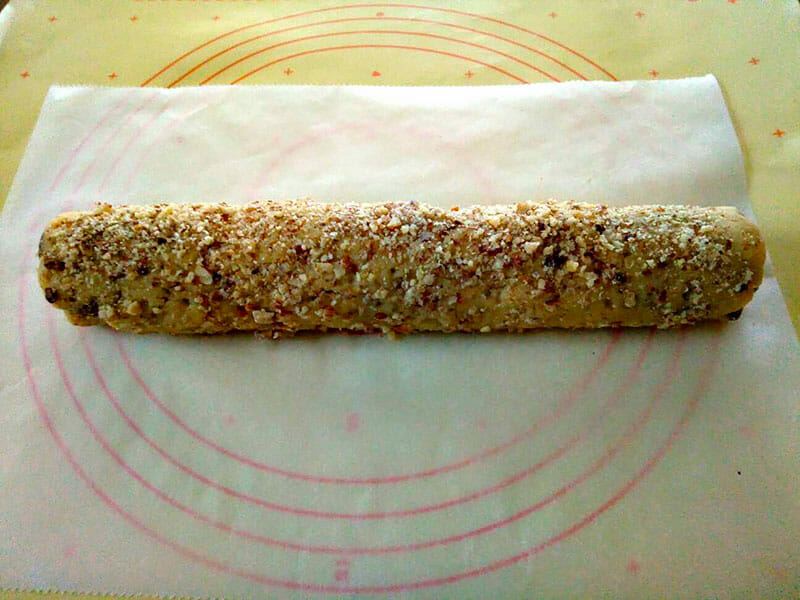 - Rouler le boudin dans les noix hachées de façon à bien l'enrober.