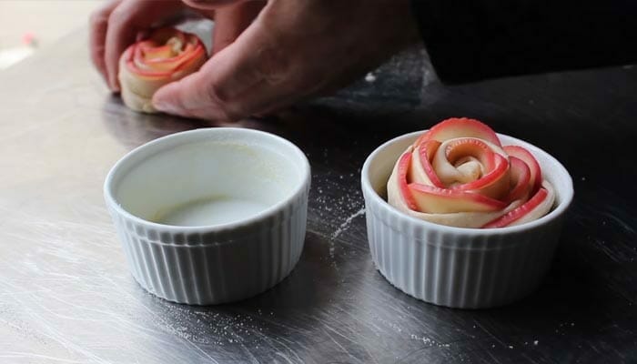 Pour un dessert délicieux et qui présente bien, suivez cette recette Thermomix de roses feuilletées aux pommes. Le montage de ces jolies fleurs avec des morceaux de pommes en guise de pétale est relativement simple à faire, il faut juste un peu de patience … pour les rouler convenablement. Au final le rendu épatera toujours vos convives 🙂
